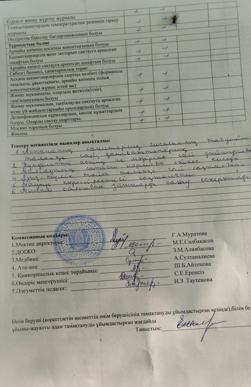 Тамақтану сапасына мониторинг жүргізу актісі » Мақсұт Жылысбаев атындағы №14 жалпы орта білім беретін мектебі