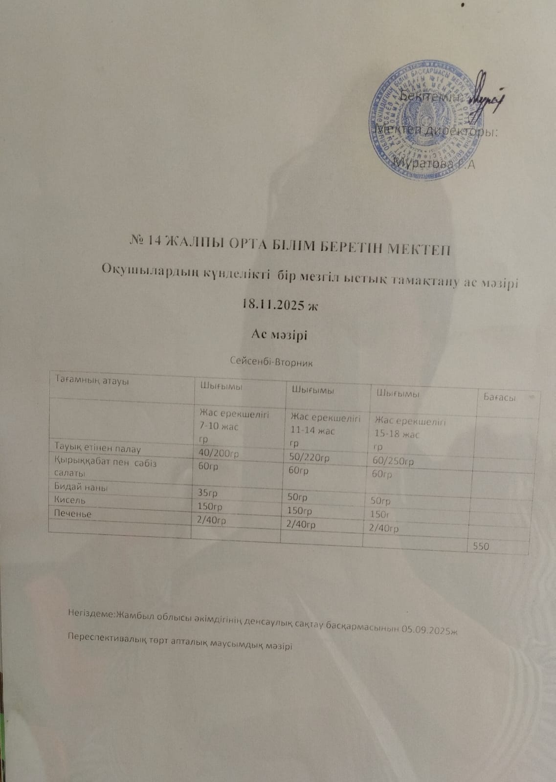 15 сентябрь 2025 Ас мәзірі